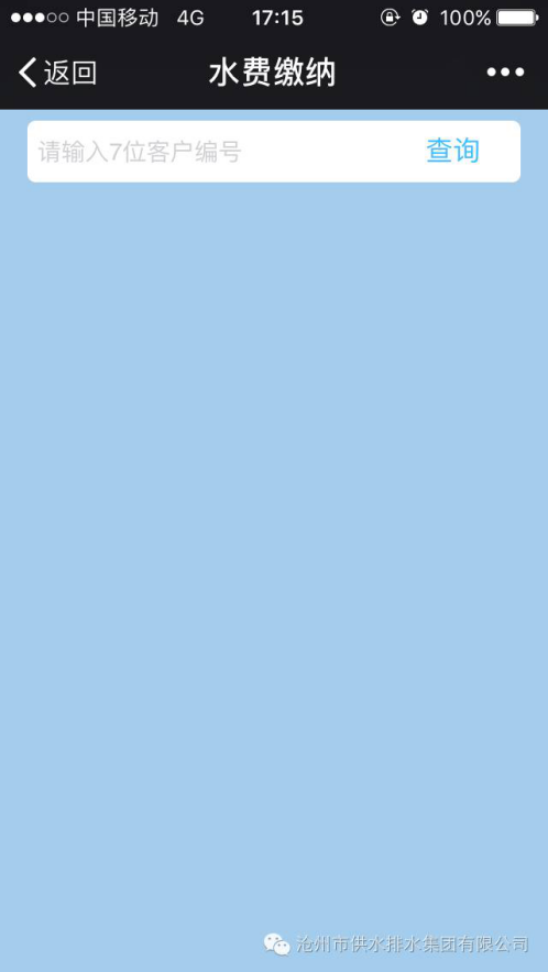 微信繳水費:用戶只需通過搜索“滄州市供水排水集團有限公司”微信公眾號,加關(guān)注后點擊“我的用水”—“水費繳納”—輸入“客戶編號”后進行查詢和繳納水費。用戶通過微信公眾號不僅能第一時間了解用水信息,還可獲知停水通知、政策法規(guī)等訊息。